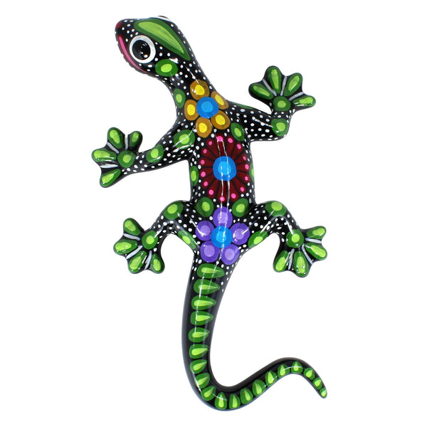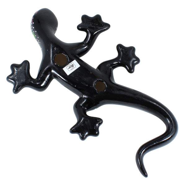 Wunderschöne Talavera Eidechse - Gecko aus handbemaltem Ton von indigenen Kunsthandwerkern aus Nayarit Farbe: schwarz, Schwanz rechts